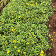 Wedelia trilobata is a fast-growing, evergreen groundcover that is exceptionally well-suited for the challenging climate of the Middle East. It forms a dense, spreading mat of lush, glossy green leaves, providing a vibrant carpet of foliage throughout the year. This hardy perennial thrives in the intense heat and can tolerate drought once established, making it an excellent choice for xeriscaping and low-maintenance landscapes. It produces a continuous display of bright, golden-yellow daisy-like flowers that bloom almost year-round in warm climates, adding a cheerful splash of color to the garden.